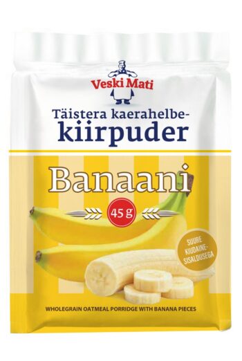 Koostisosad: Täistera KAERAhelbed (83%), suhkur, kuivatatud banaanitükid (6%), sool. Toode võib sisaldada vähesel määral piima. EAN kood: 4740281456504 Pakendid: 18 x 45 g